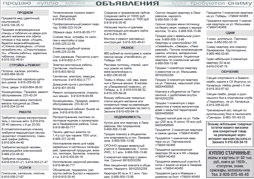 Газета с объявлениями