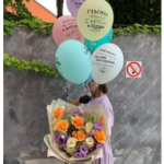 Коробка с цветами и шарами с индивидуальной надписью
